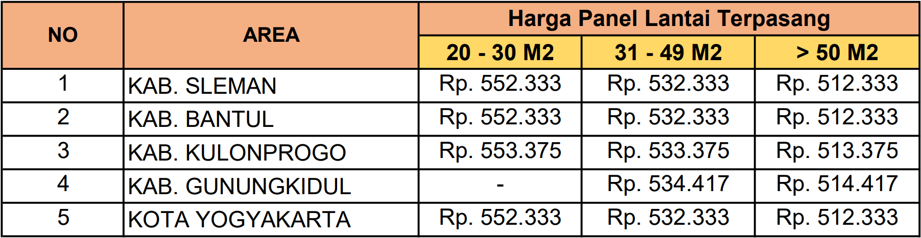 Harga Panel Lantai Citicon Provinsi Yogyakarta